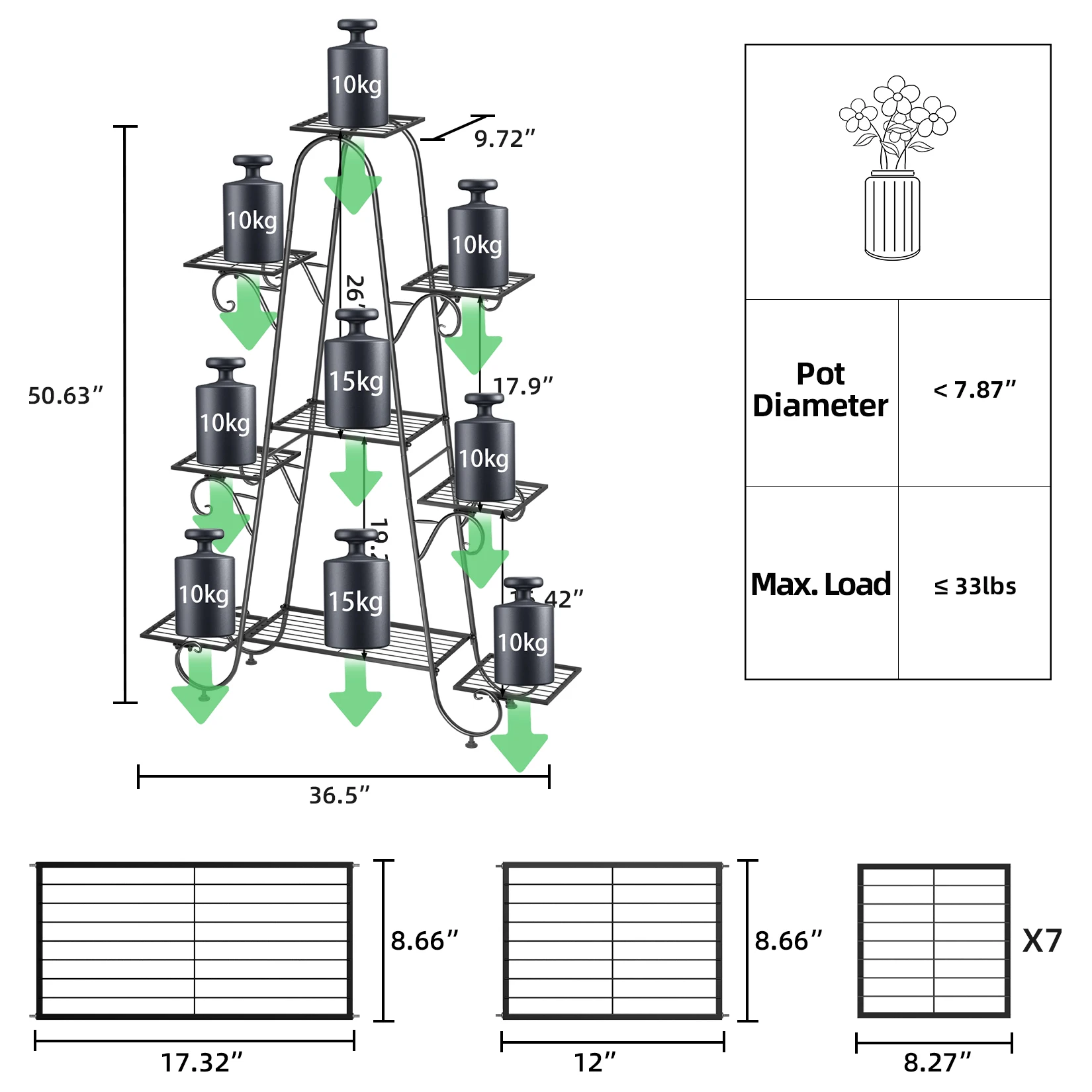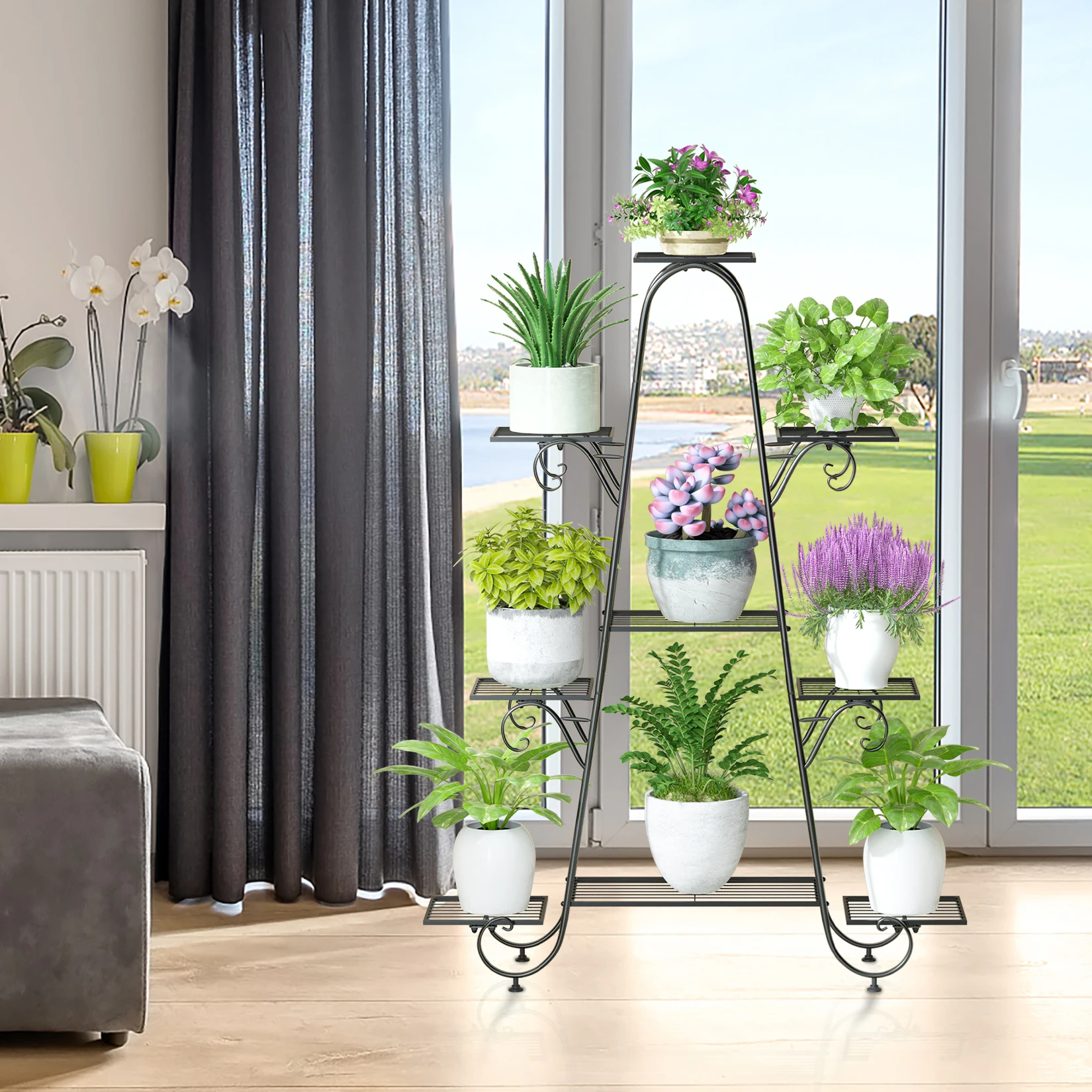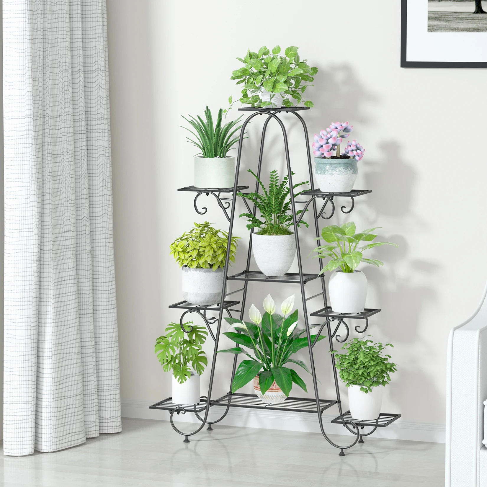 9-tier, can be utilized to display a wide assortment of potted greenery.