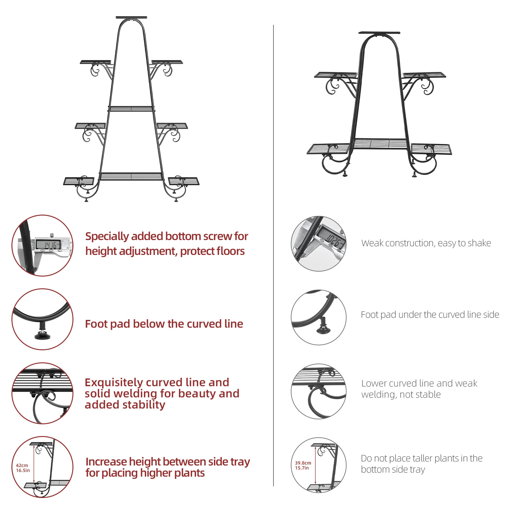 - The plant stand parts will be sent by separate and without assembling.